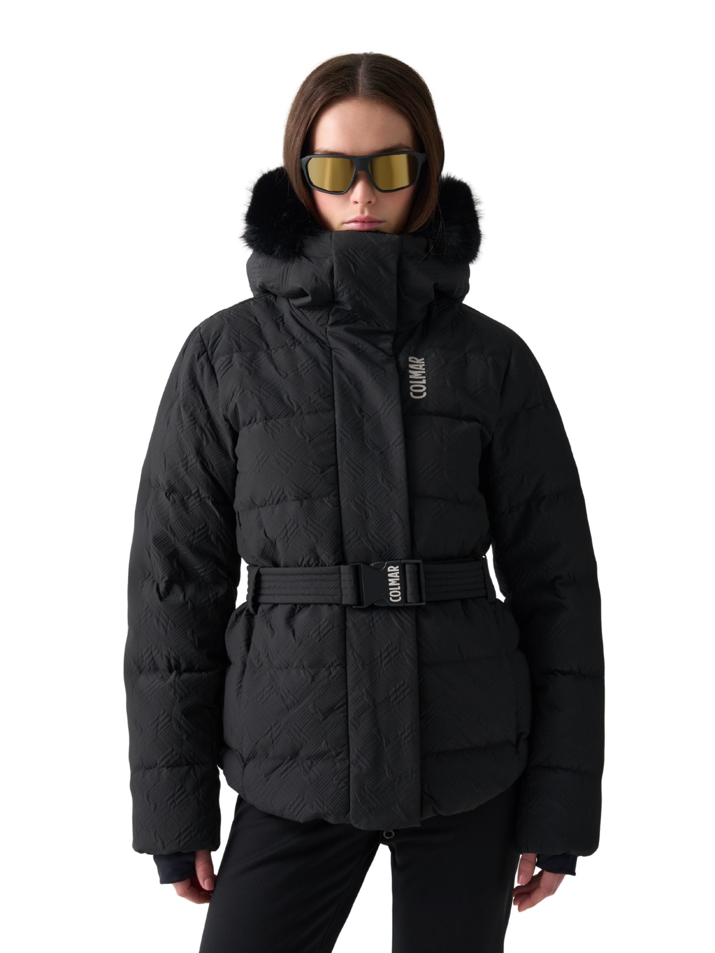 Colmar Puffy Parka Embossed Extra Warm Down Jacket to luksusowa damska kurtka narciarska w formie długiej parki z paskiem, wykonana w 100% z tłoczonego poliestru z recyklingu. Zapewnia maksymalną ochronę przed zimnem i wilgocią dzięki membranie WPT10000 i puchowi PIUMA WR.