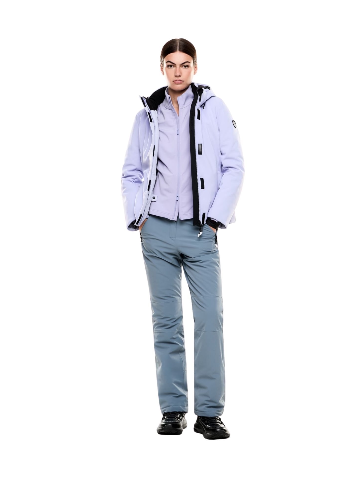 Tkanina (85% poliester, 15% elastan) zapewnia pełną swobodę ruchów i wysoki poziom komfortu podczas jazdy na nartach i aktywności outdoorowych.