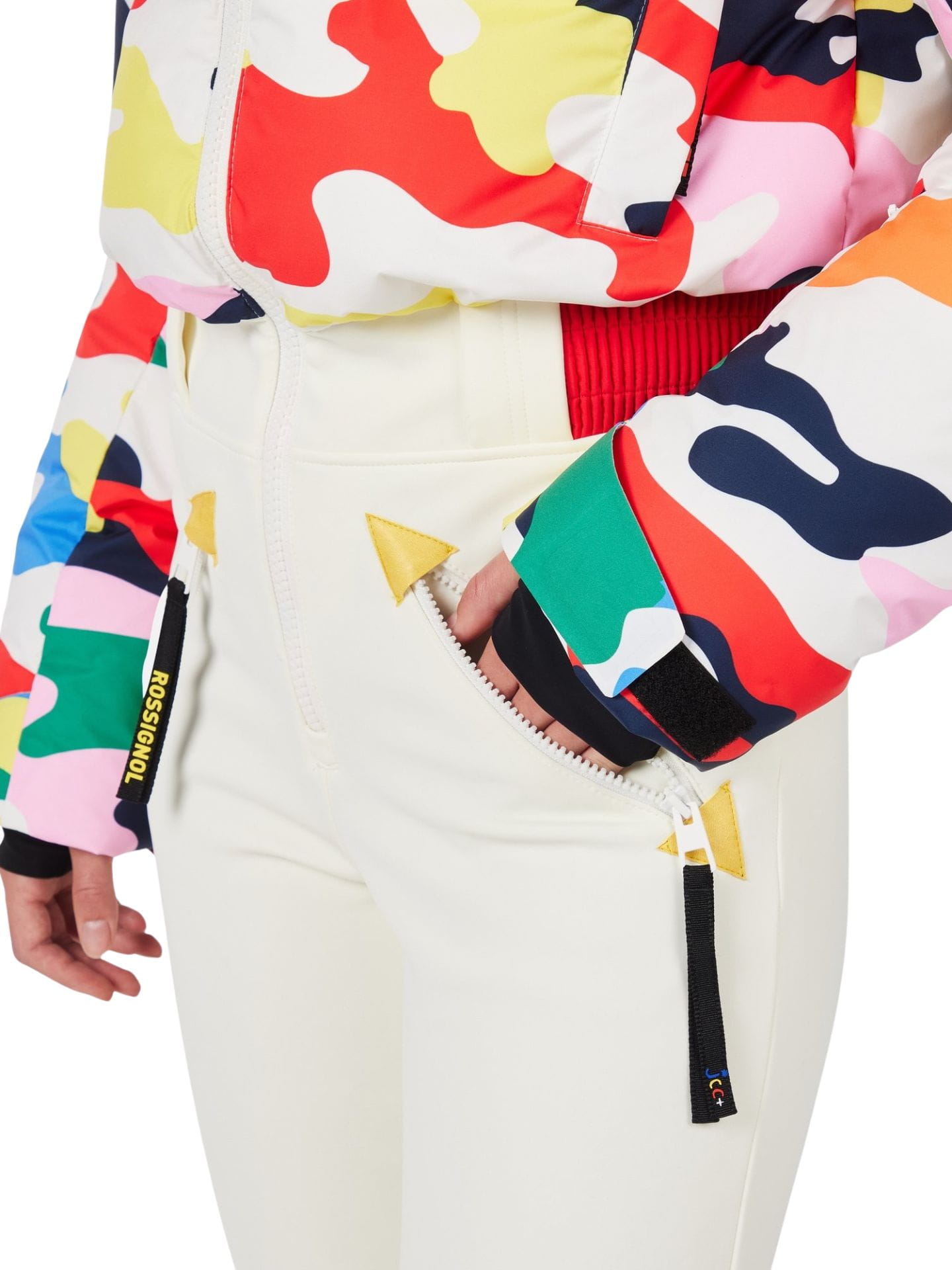 Kombinezon wykonany z poliestru i elastanu z recyklingu, wykończony trwałą impregnacją DWR wolną od PFC. Ozdobne naszywki JCC x Rossignol na łydce podkreślają unikatowy charakter modelu.