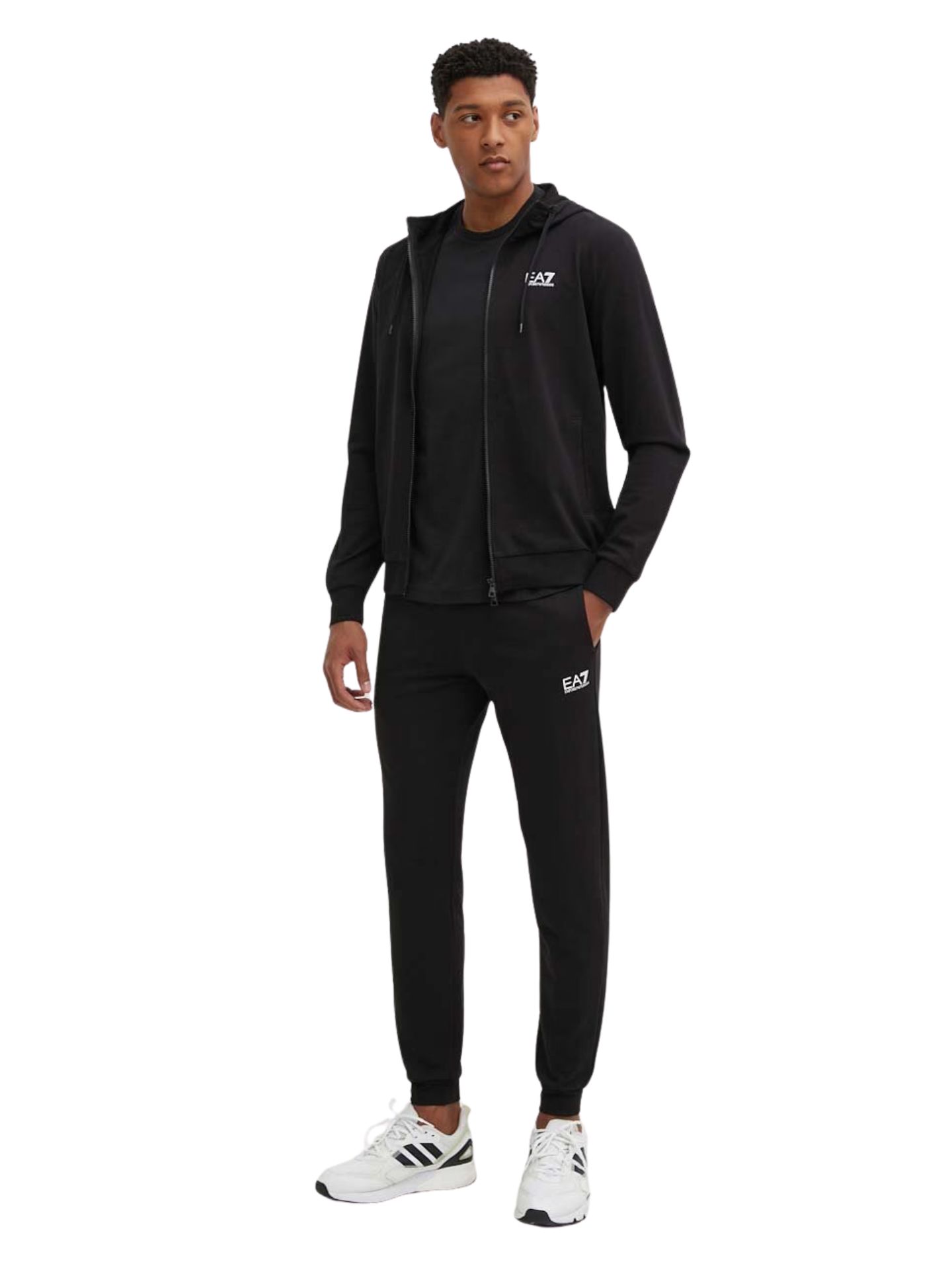 Oba elementy zestawu zostały ozdobione ikonicznym, kontrastowym logo EA7, które podkreśla przynależność do prestiżowej linii Core Identity. Funkcjonalne detale, takie jak regulowany kaptur, praktyczne kieszenie boczne oraz elastyczne ściągacze, sprawiają, że dres idealnie sprawdza się zarówno podczas relaksu, jak i w drodze na trening.