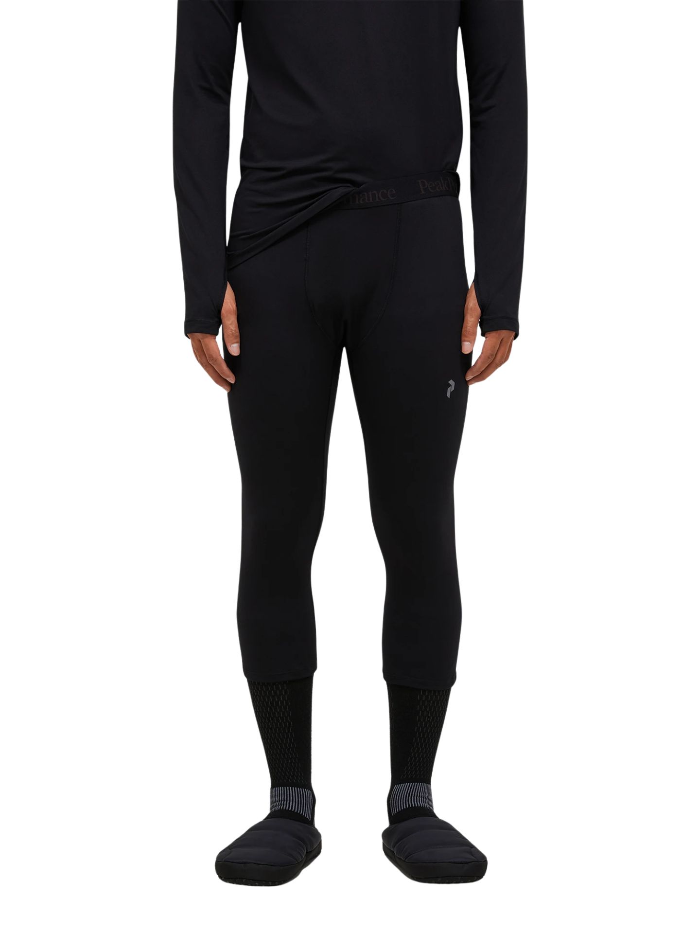 Płaskie szwy | Brak bocznych szwów | Elastyczny pas z logo Peak Performance