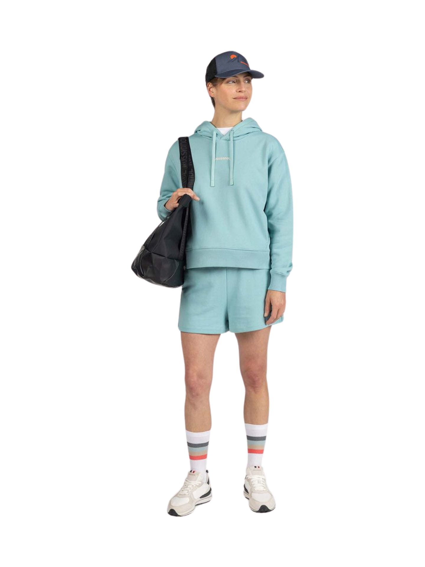 Miękka, francuska dzianina frotte zapewnia przyjemne uczucie na skórze przez cały dzień, a subtelne detale Rossignol podkreślają górskie dziedzictwo marki.