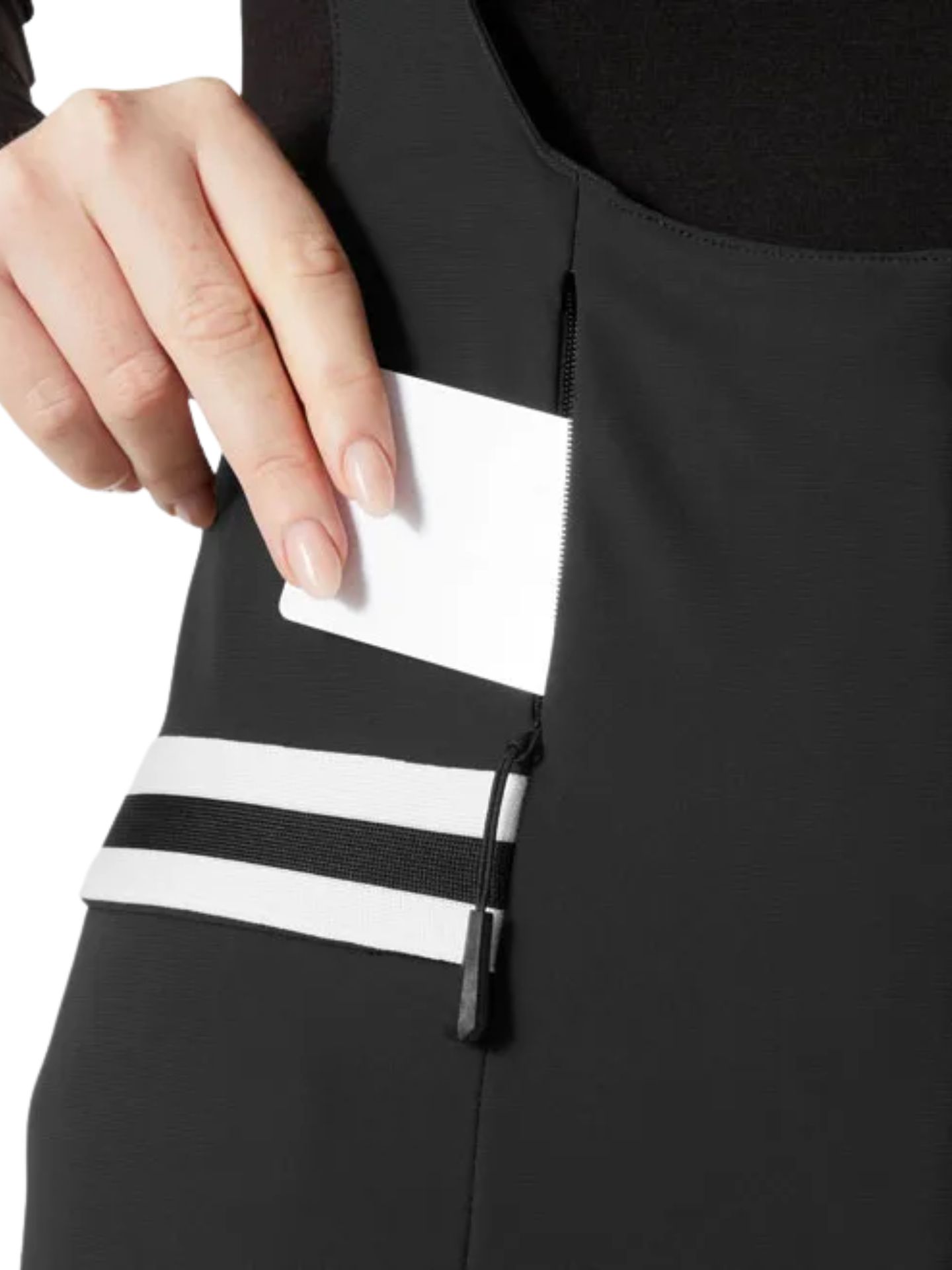 Spodnie w kroju Fitted (dopasowanym) o długości wewnętrznej nogawki 80 cm. Elegancki i opływowy kształt, wzmocnienia na dole nogawki oraz możliwość regulacji sprawiają, że są idealne dla wymagających narciarek. Wygodne, elastyczne szelki utrzymują spodnie na miejscu podczas dynamicznej jazdy.