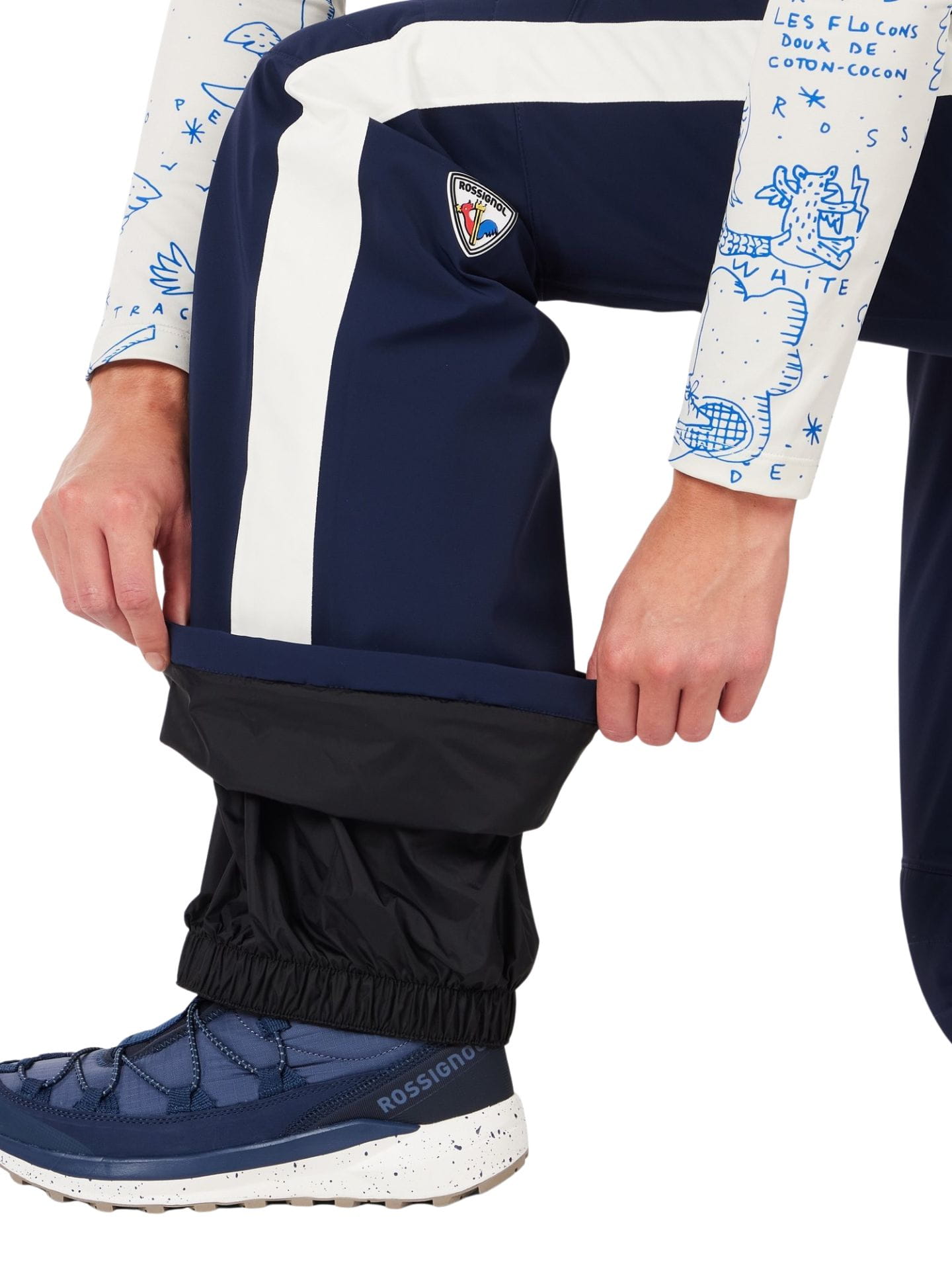Czterokierunkowy stretch i regularny krój zapewniają pełną swobodę ruchów, a materiały z recyklingu podkreślają ekologiczny charakter modelu. Praktyczna kieszeń na nogawce, zintegrowane getry przeciwśnieżne i detale JCC x Rossignol sprawiają, że te spodnie są nie tylko stylowe, ale i niezwykle funkcjonalne.